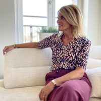 Mi Piace Travelstof Top shirt V-Hals burgundy latte abstract 202271