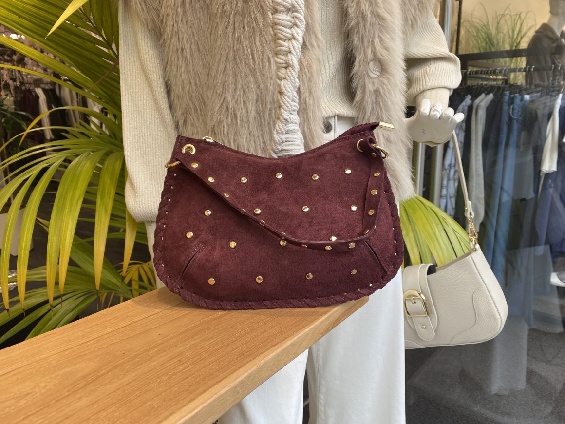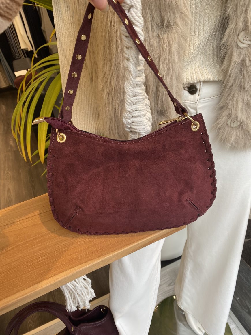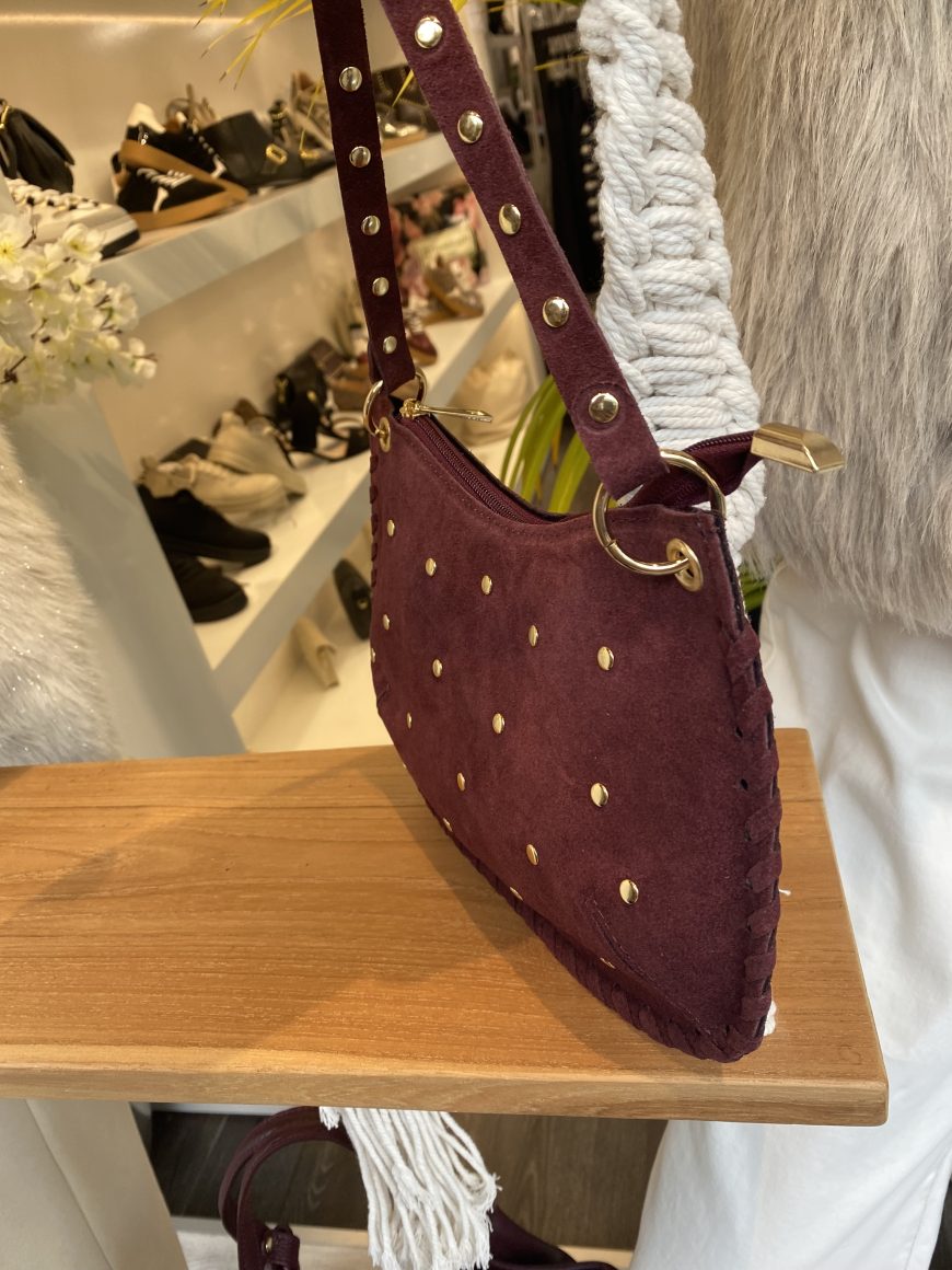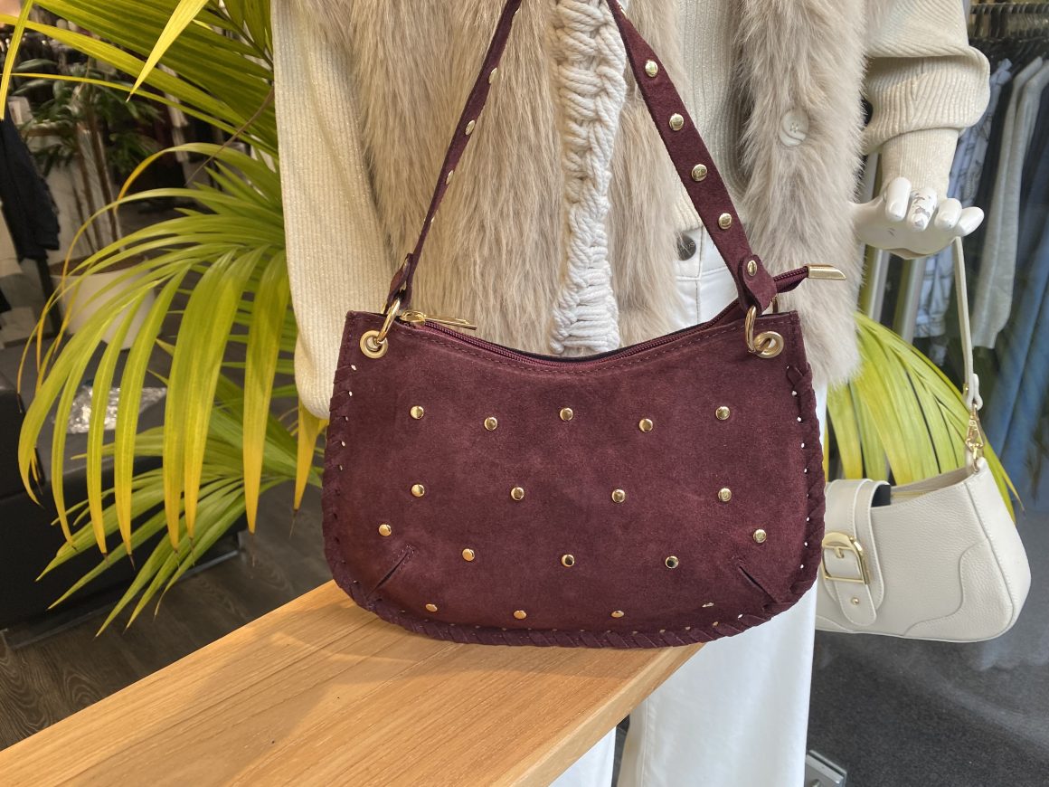 Casey Tas Studs Suede Burgundy/Goud T304