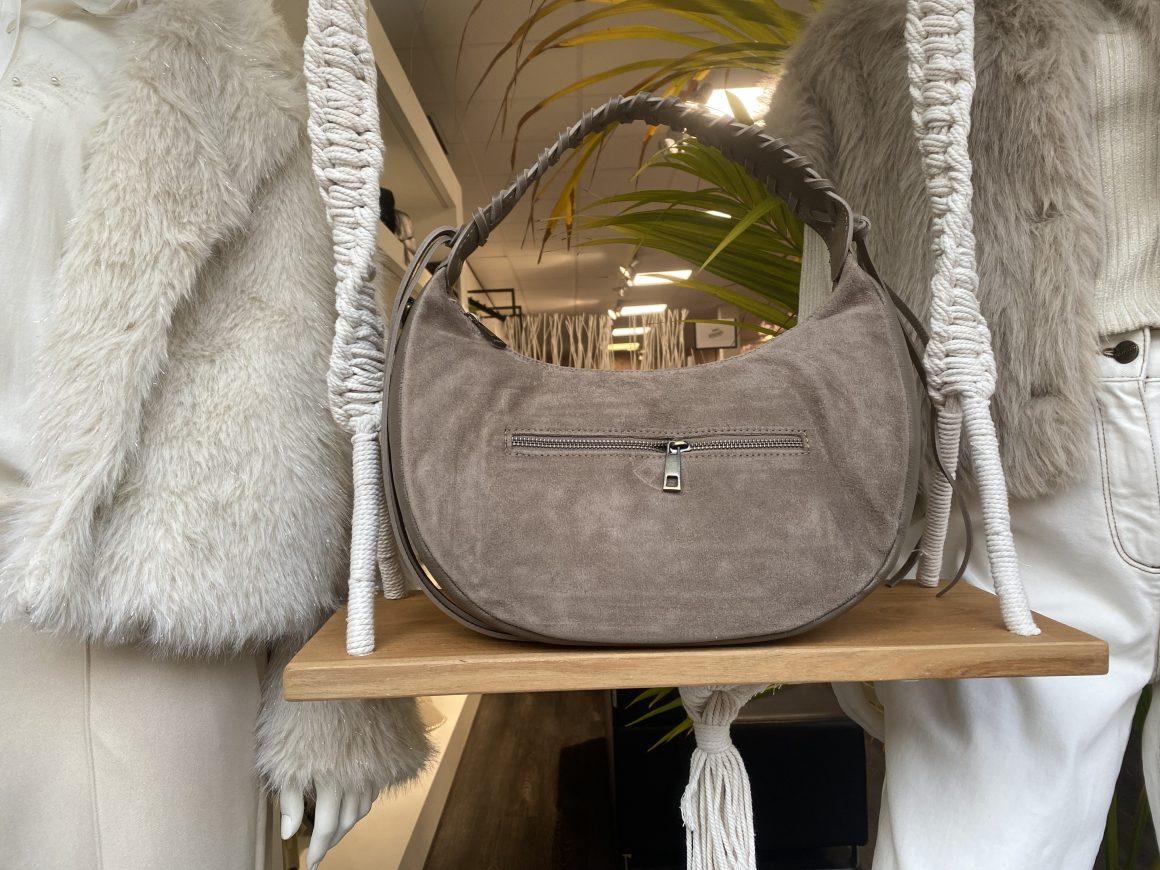4Fashion / Mode / Accessoires / Cassidy Tas Suede/Leer Vlecht Taupe T257