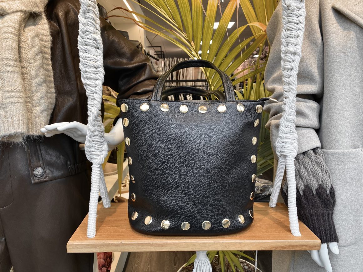 Crossbody Tas Leer Studs Zwart/Goud T378