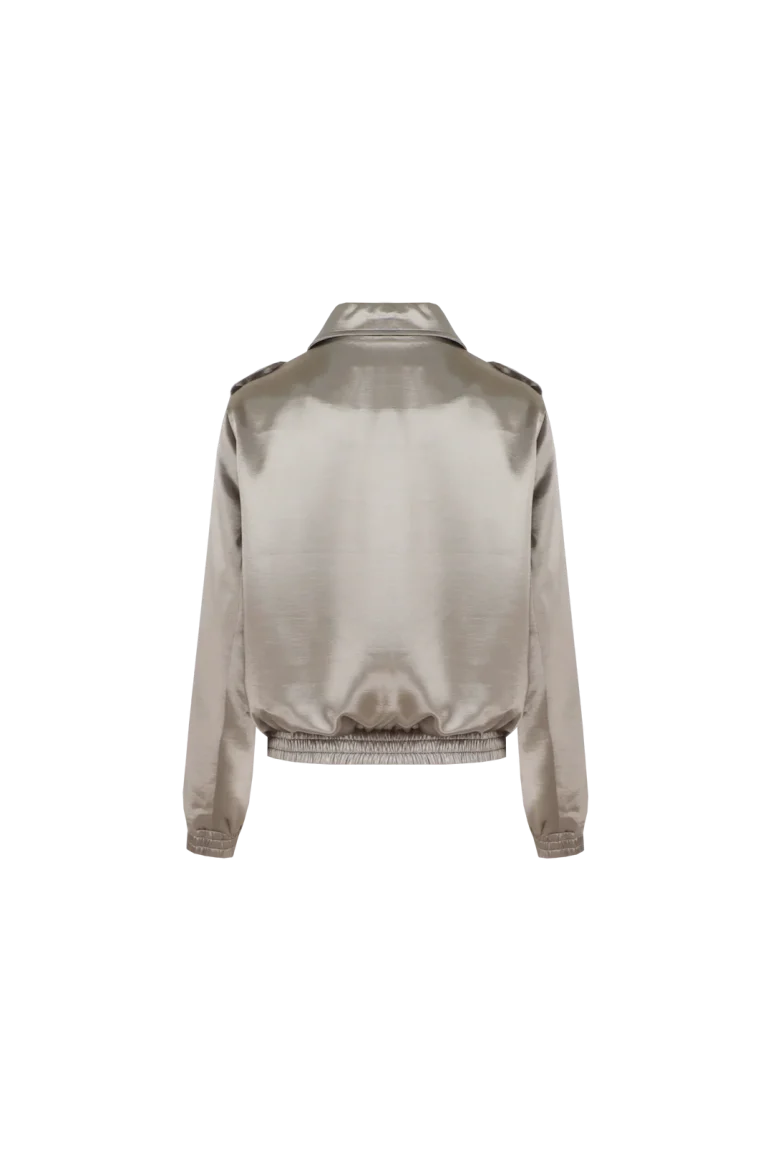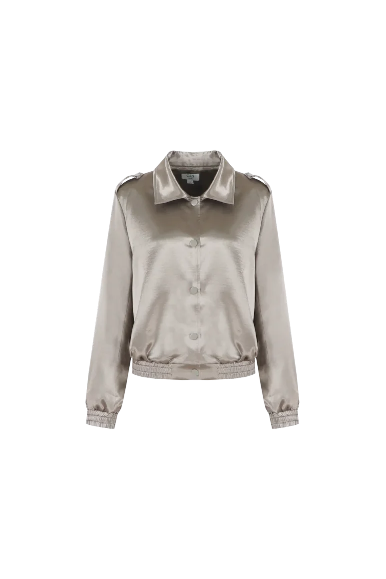De Ilaya jacket van C&S is een stijlvol statement piece met een luxueuze satijnlook. Het korte model met klassieke kraag en knoopsluiting oogt elegant, terwijl de elastische boorden zorgen voor een comfortabele pasvorm. Dankzij de subtiele glans laat deze jas zich zowel casual als chic dragen: combineer met een jeans voor een moderne alledaagse look of met een pantalon voor een verfijnde uitstraling.