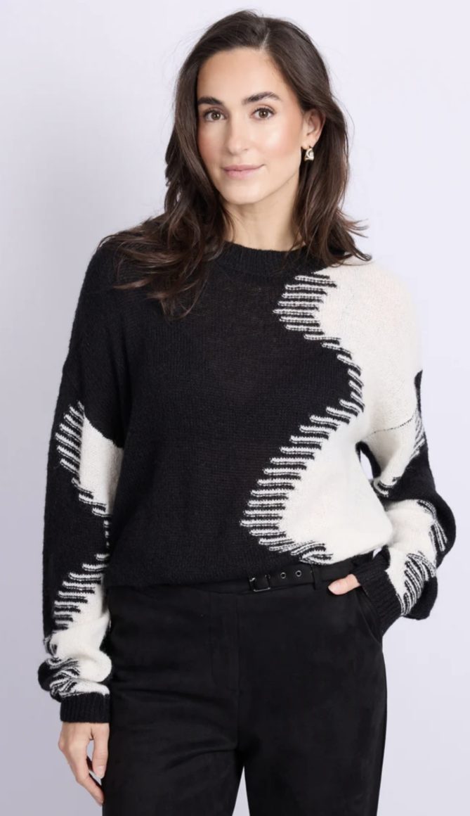 C&S Karly Knit Pullover trui black / wool white