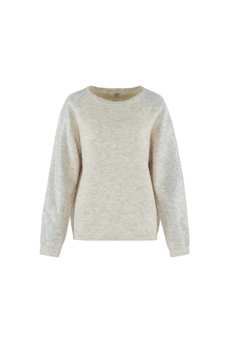 De Keira knit pullover van C&S is een fijngebreide pullover met decoratieve strass steentjes op de schouders en mouwen. De pullover heeft een losvallend model en is voorzien van een ronde halslijn.