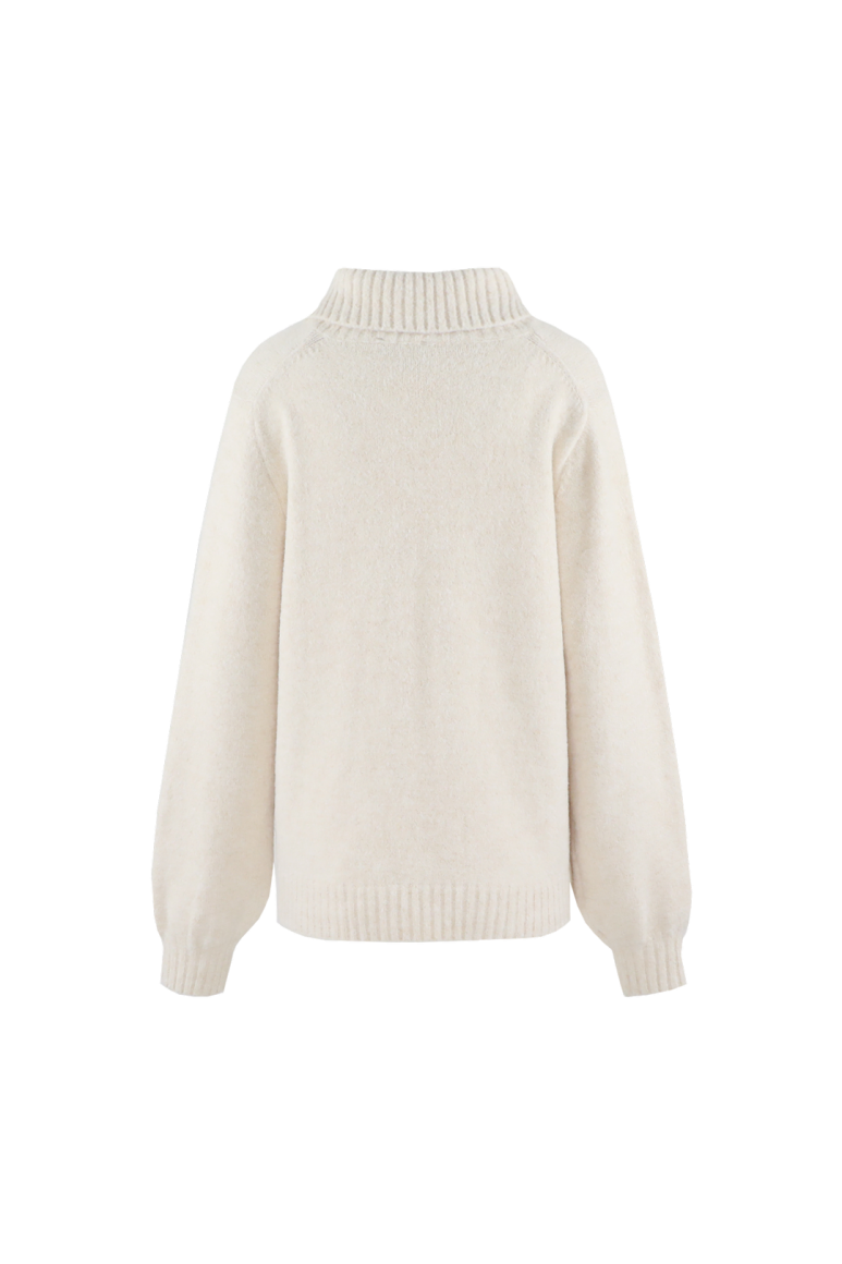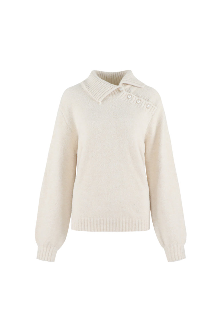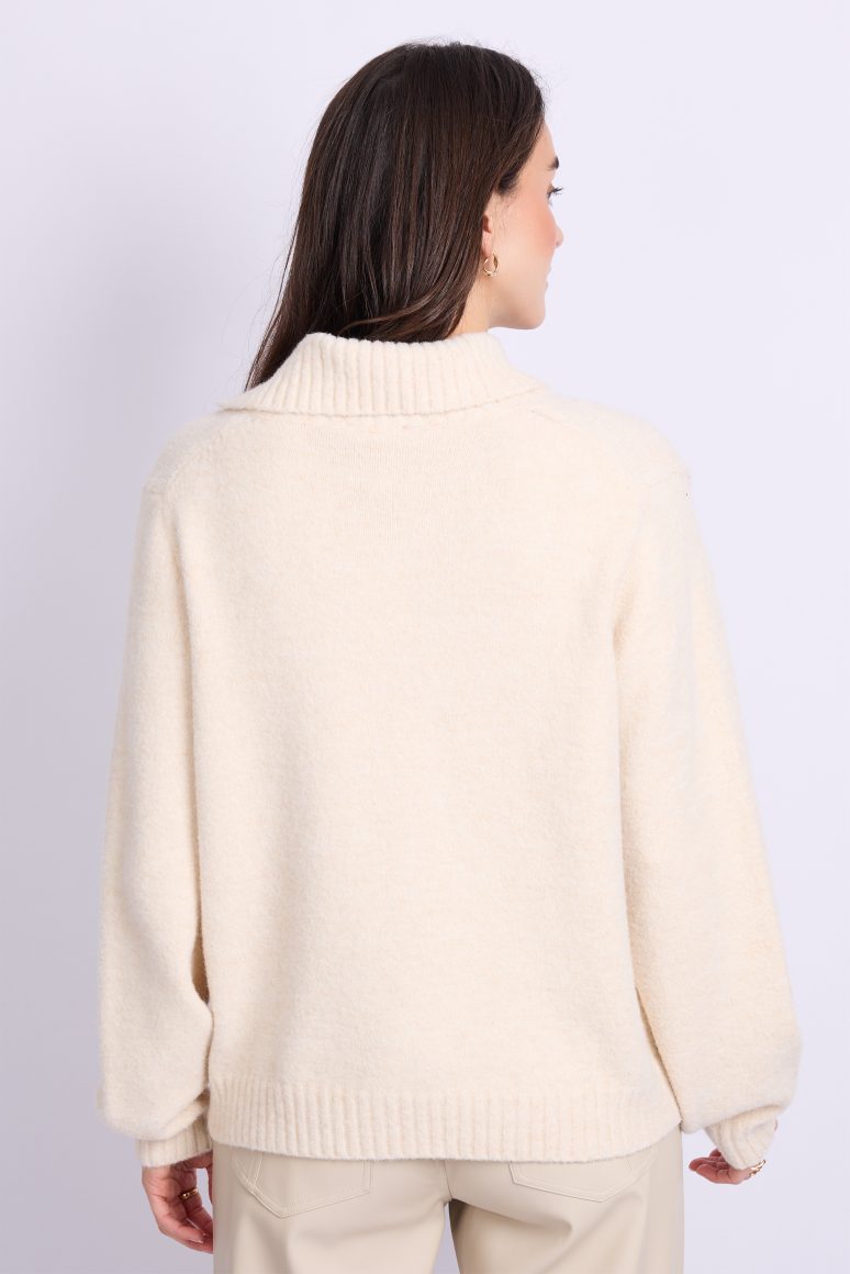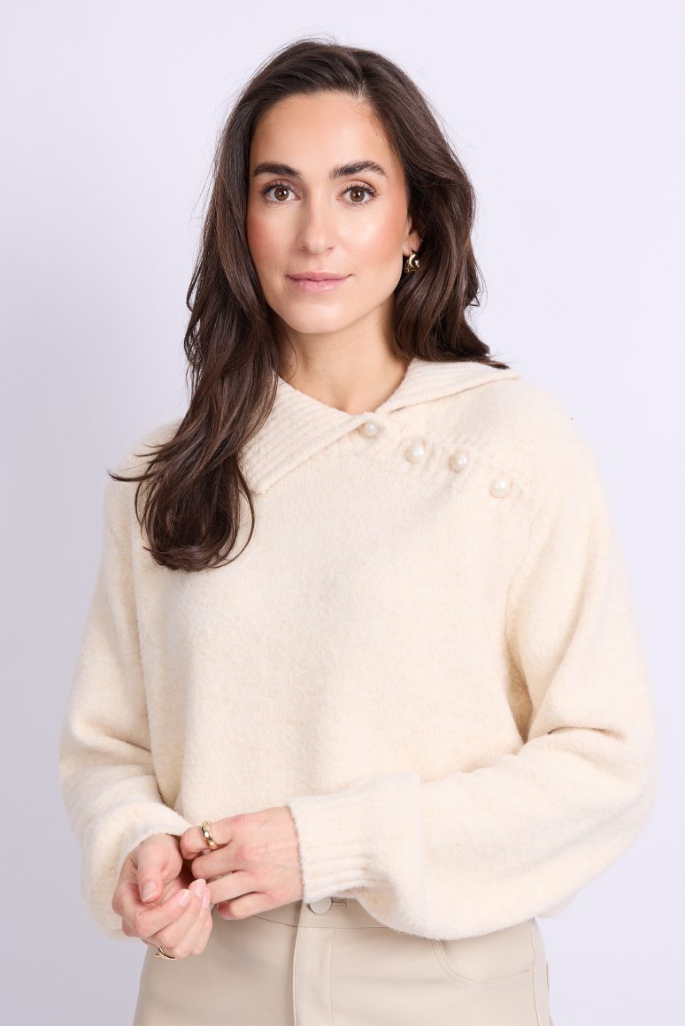 De Kelsey knit pullover van C&S is een zachtgebreide pullover met een knoopsluiting op de schouder. De pullover is voorzien van een kraag en lange ballonmouwen.