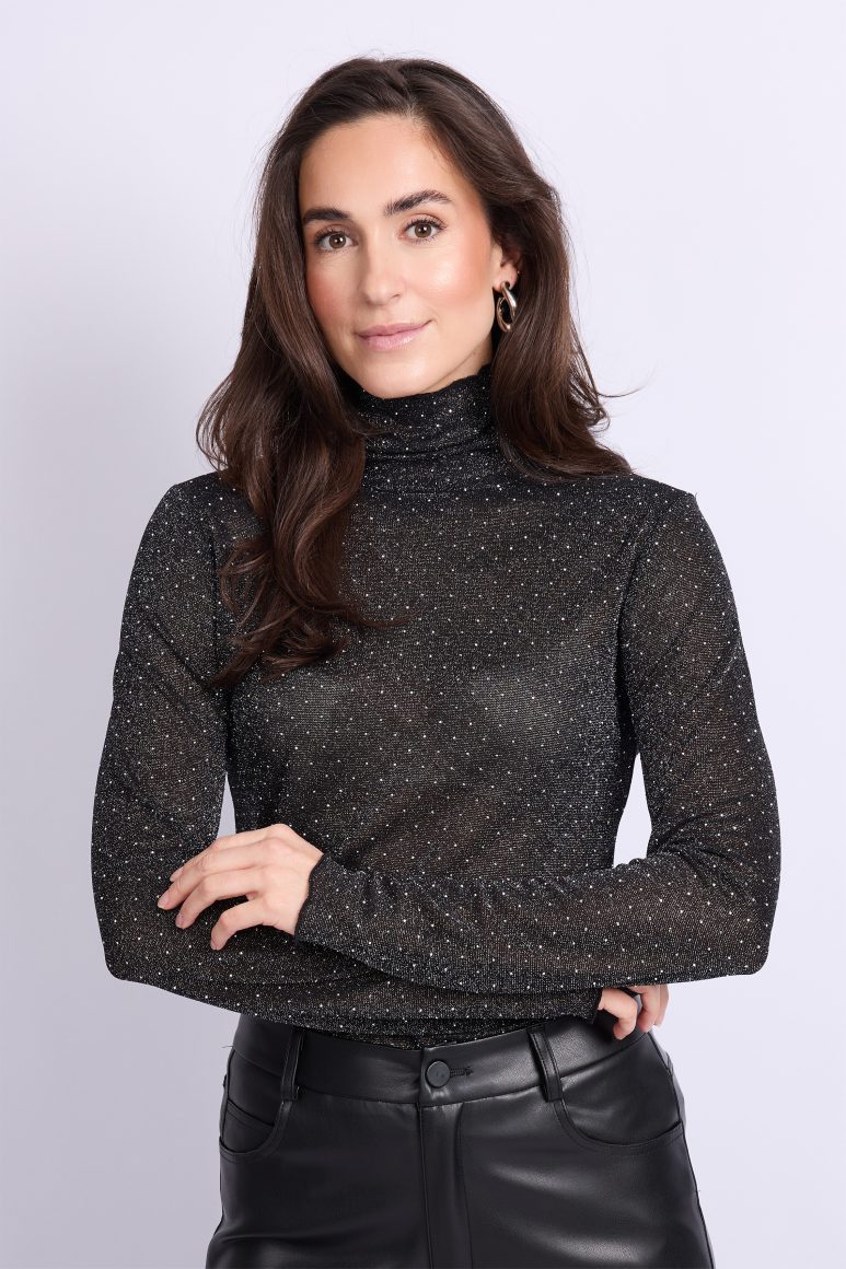 De Tatiana top van C&S is een feestelijke top met lange mouwen en een col. Het glitterdesign zorgt ervoor dat deze top het perfecte item is voor de feestdagen!