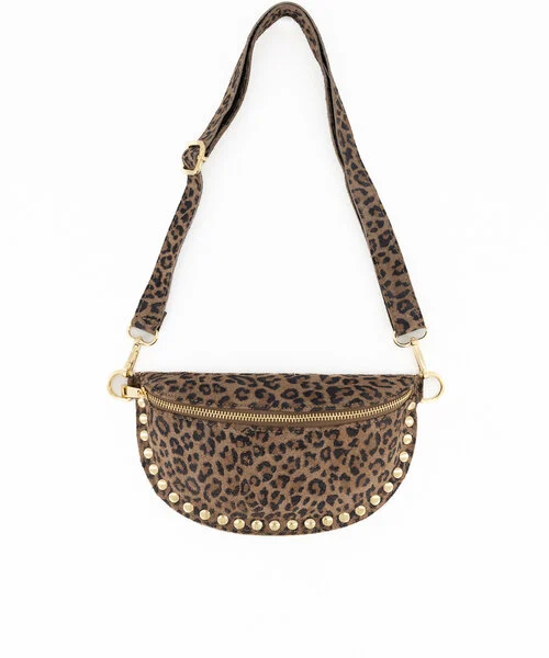 Debby is een suede leren heuptas die ook als crossbody tas gedragen kan worden. De Debby heuptas heeft een binnenvak en een steekvak met een afneembaar en verstelbaar leren hengsel. De tas is afgewerkt met studs en goudkleurig hardware.