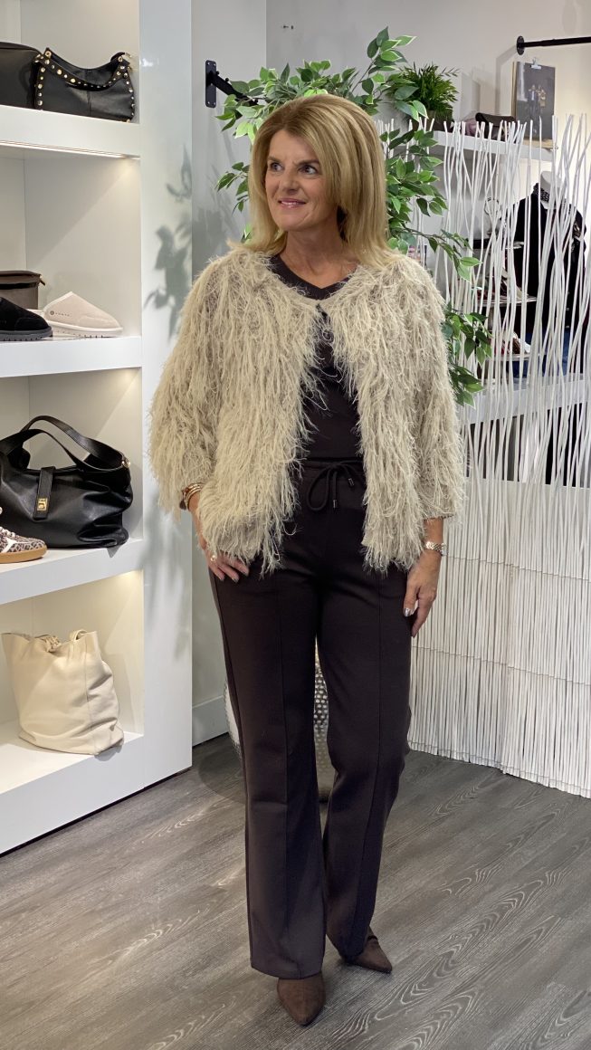 Maak een statement met het Peggy vest van Fluresk, een ultra-zacht, fluffy vest dat je outfit instant een speelse en luxe touch geeft. De cropped fit en driekwartmouwen maken ‘m perfect voor gelaagde looks, terwijl de lichtgewicht stof zorgt voor een comfy feel. Dit vestje is dé eye-catcher die je nodig hebt voor een fashionable upgrade van je garderobe.