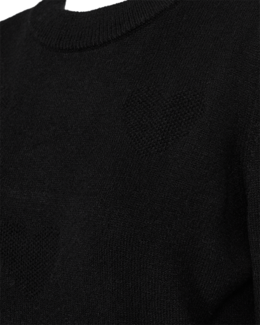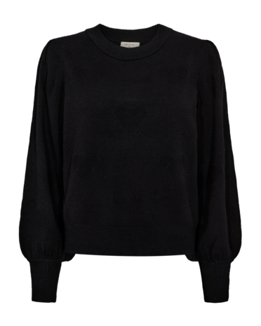 De Alfa pullover van Freequent is een trui in een zachte, gebreide stof met een fijn hartjespatroon. De trui heeft lange ballonmouwen, een casual pasvorm en een brede ribboord.