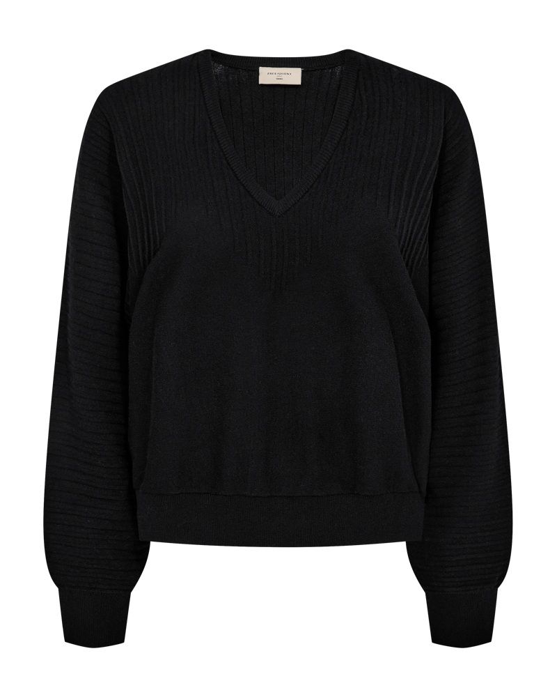 De Alfa pullover van Freequent is een pullover in een zachte stof en een geribde structuur. De trui heeft een eenvoudig silhouet met een losse pasvorm, een elegante V-hals en lange mouwen met boorden.