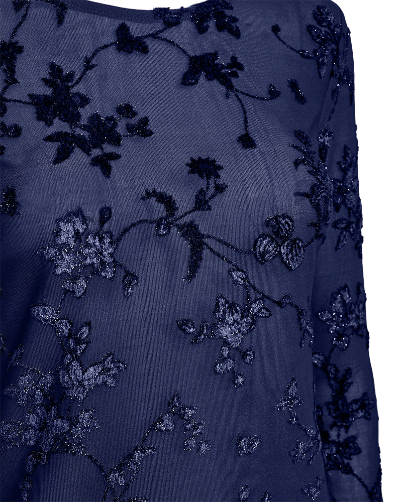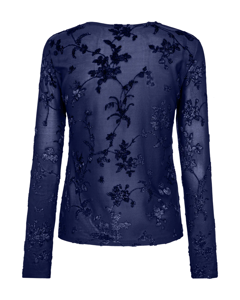 De Biska top van Freequent is een top in een transparante en rekbare mesh stof met een bloemenpatroon en een glanzende look. De top heeft een eenvoudig silhouet met een strakke pasvorm, lange mouwen en een ronde hals.