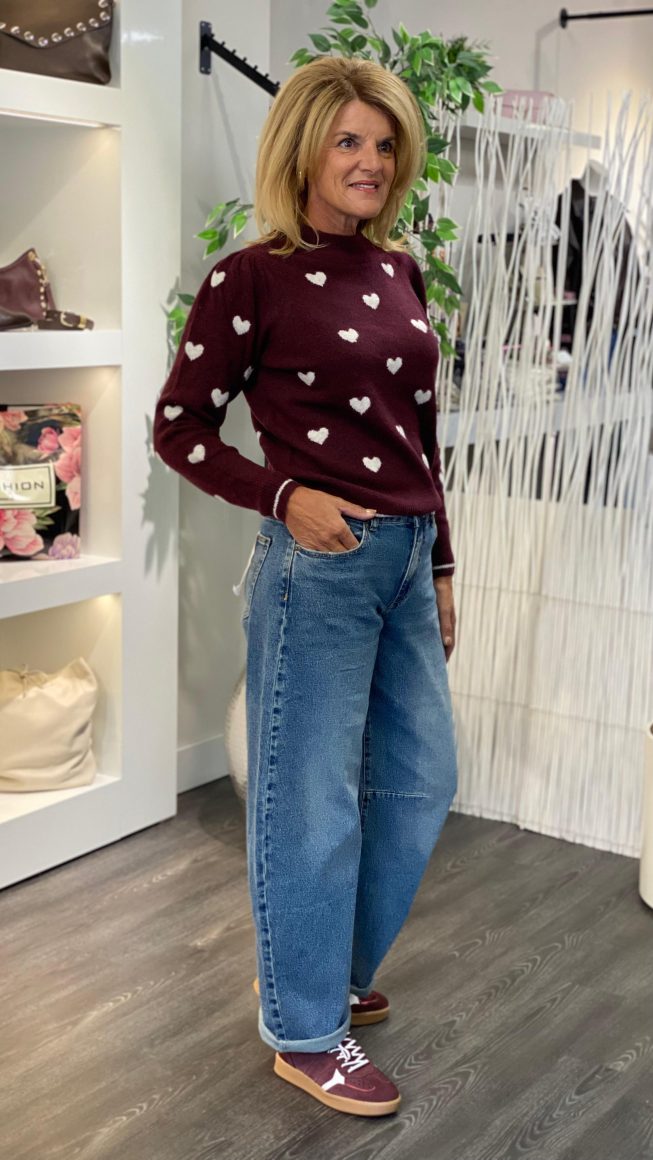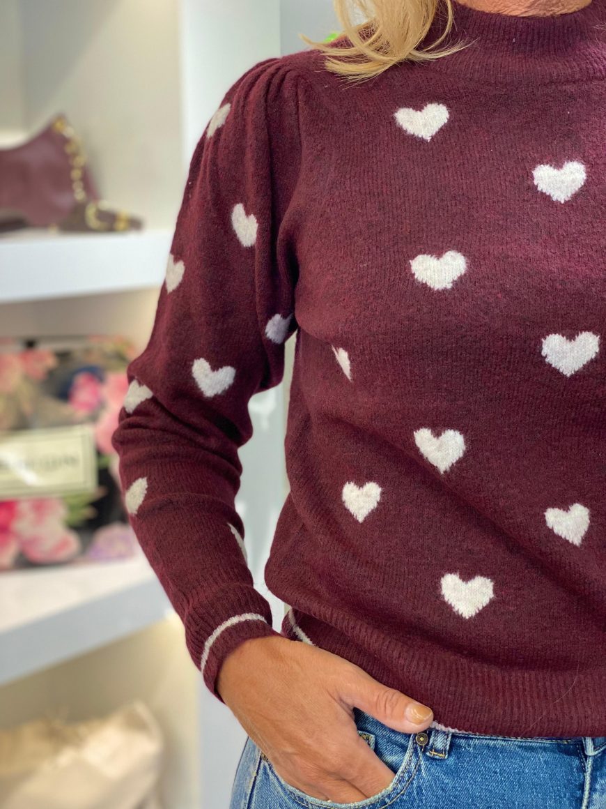 De Faith pullover van Freequent is een trui in een zachte, gebreide stof met een fijn hartjespatroon. De trui heeft lange pofmouwen, een casual pasvorm en een ribboord met een contrasterende streep voor een stijlvolle look.