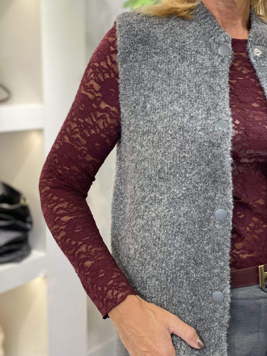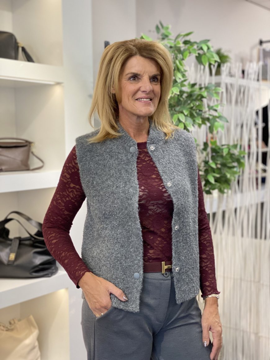 Het Jump gilet van Freequent is een gilet in een zachte, gebreide stof. Het gilet heeft een eenvoudig silhouet met een knoopsluiting aan de voorkant en een ronde hals met ribboord.
