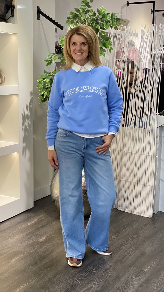 4Fashion / Mode / Nieuw / Freequent Kamela Pullover vista blue w. star off white