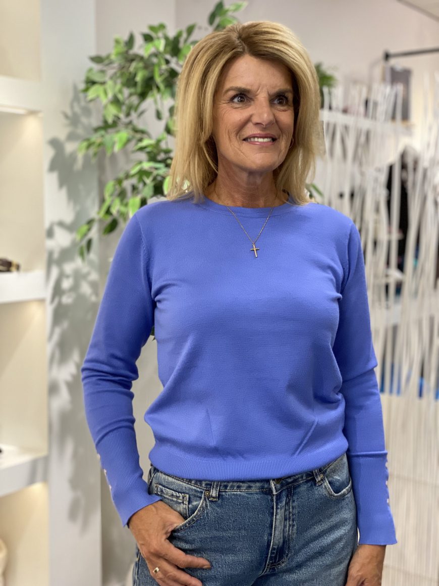 De Katie pullover van Freequent is een zachte, fijngebreide trui met fijne knoopjes op de lange mouwen, een ronde halslijn, ribboorden en een elegante, casual pasvorm.