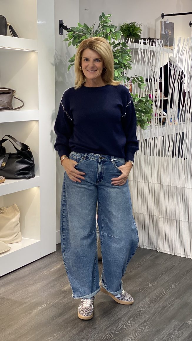 De Kinlock pullover van Freequent is een trui in een zachte, gebreide stof. De trui heeft een ronde hals, lange ballonmouwen, verlaagde schouders, tapijtstiksels en een losse pasvorm.