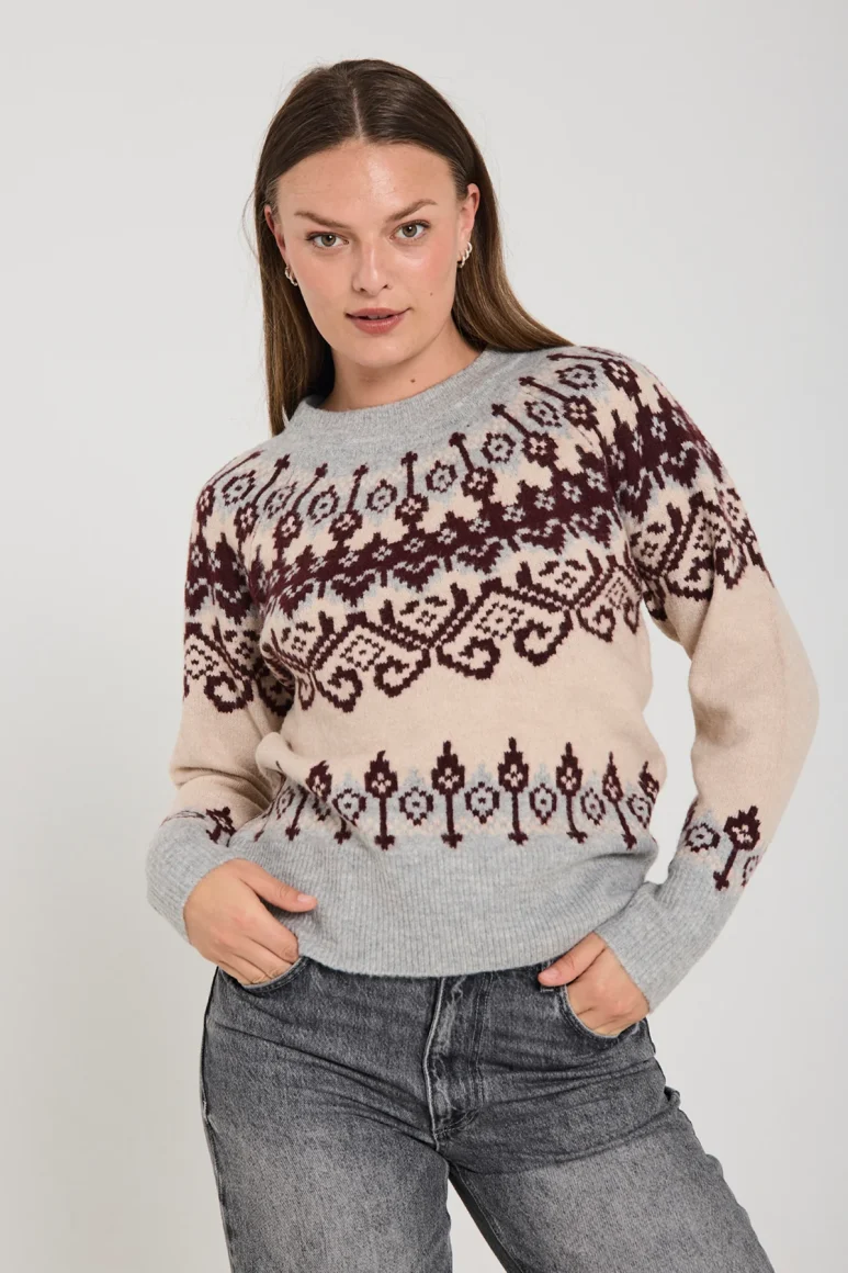 De Merla pullover van Freequent is een trui in een zachte, fijngebreide stof. De trui heeft een losse pasvorm, brede ribboorden, een ronde hals en een prachtig boordpatroon. Details die samen zorgen voor een casual look.