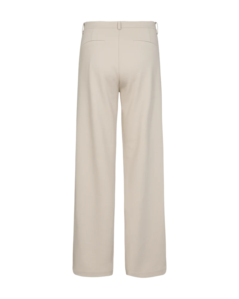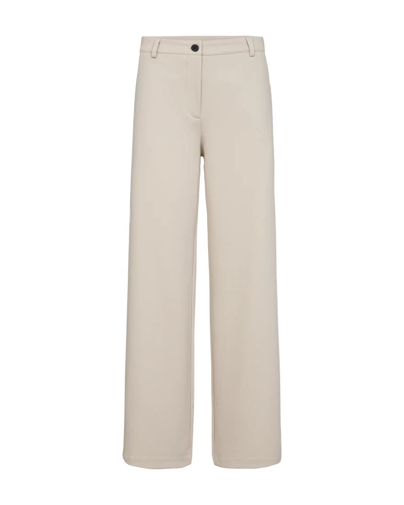 De Nanni broek van Freequent is een broek in een zachte stof. De broek heeft een eenvoudig silhouet met rits- en knoopsluiting, schuine steekzakken aan de zijkant, een rechte pasvorm en een hoge taille.