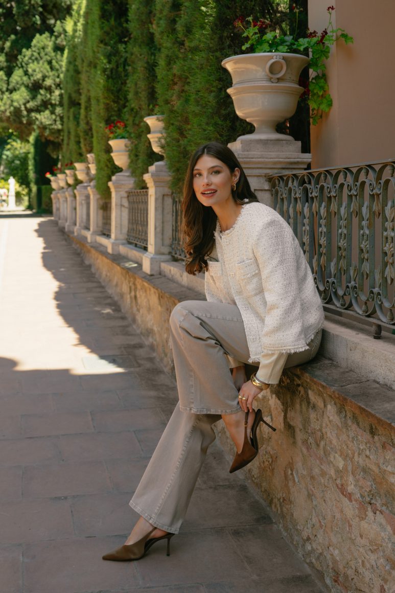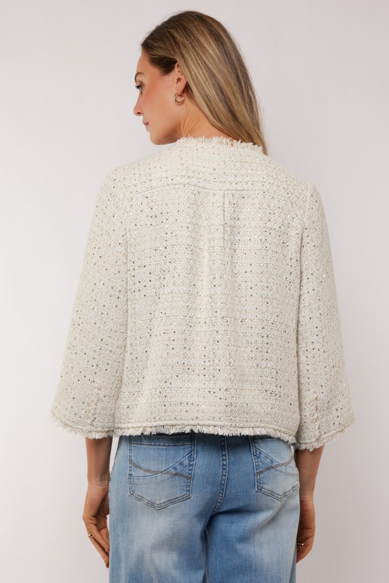 Geef je outfit een elegante, moderne uitstraling met de Aubree jacket van G-maxx! Dit korte jasje heeft halflange mouwen en een ronde hals, waardoor het een lichte en luchtige keuze is voor het voorjaar. De jacket heeft een knoopsluiting, steekzakken aan de voorkant en is voorzien van subtiele pailletten voor een verfijnde look.