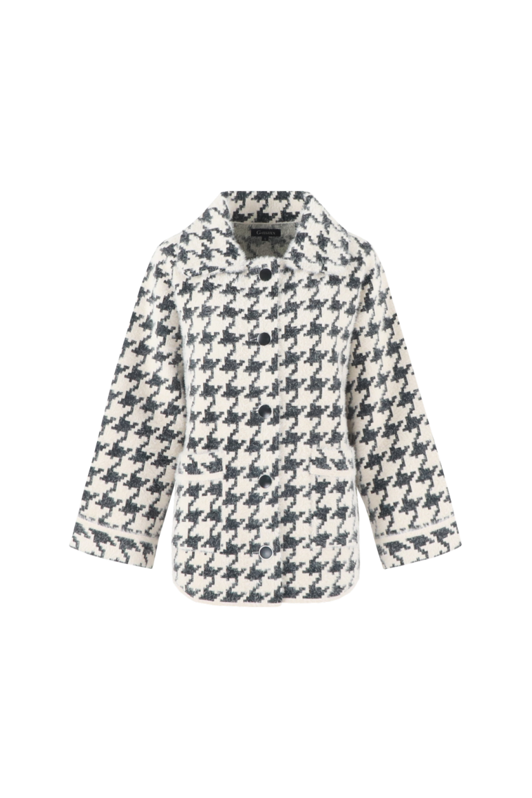Het Sana jacket van G-maxx is een echte eyecatcher met zijn klassieke pied-de-poule print in een moderne uitvoering. Het korte jasje heeft een rechte pasvorm en is afgewerkt met stijlvolle knopen en praktische zakken. Perfect om je look direct een chique en fashionable upgrade te geven, of je het nu casual of gekleed combineert.