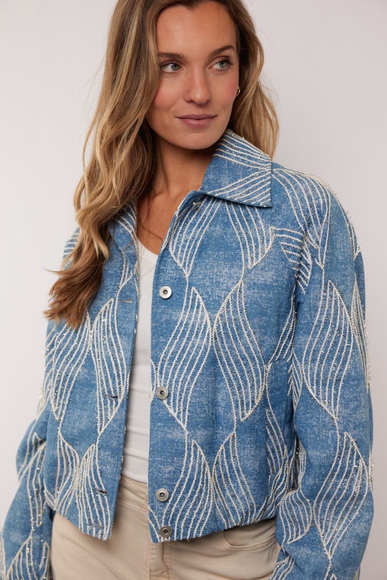 De Zariah jacket van G-maxx  is een prachtig jasje in kort model met een rechte pasvorm. De jacket is voorzien van een klassieke kraag, een knoopsluiting en lichte ballonmouwen. Het subtiele glitter voegt een speels element toe. Een absolute favoriet!