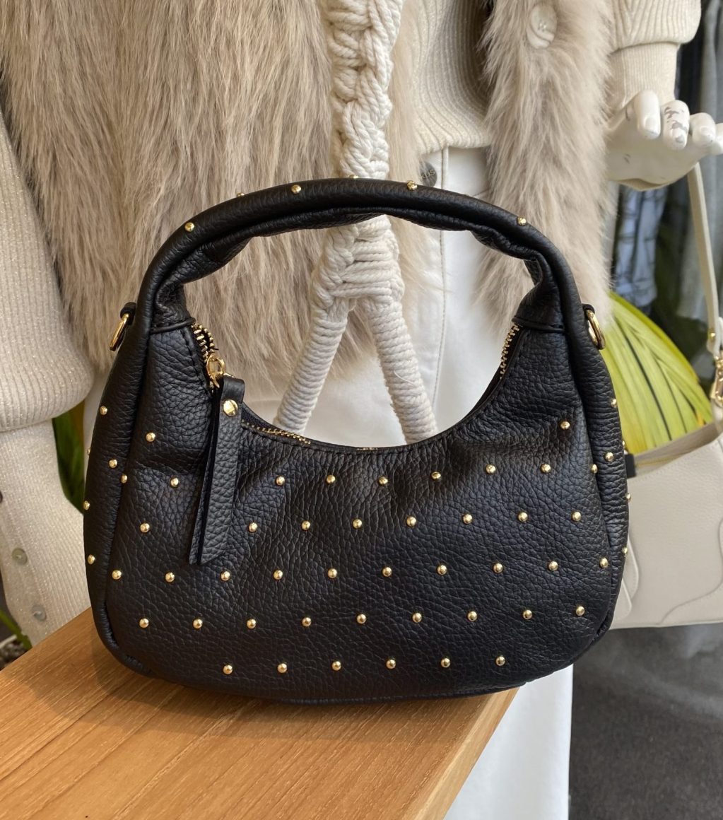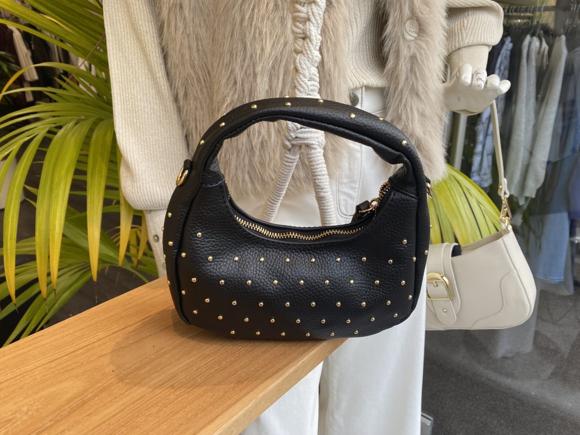 4Fashion / Mode / Accessoires / Handtas Lala Leer Studs Zwart/Goud T317
