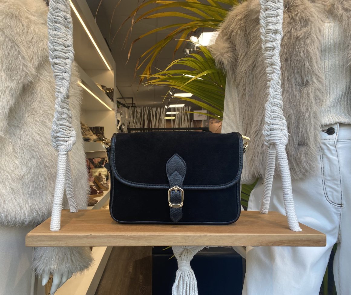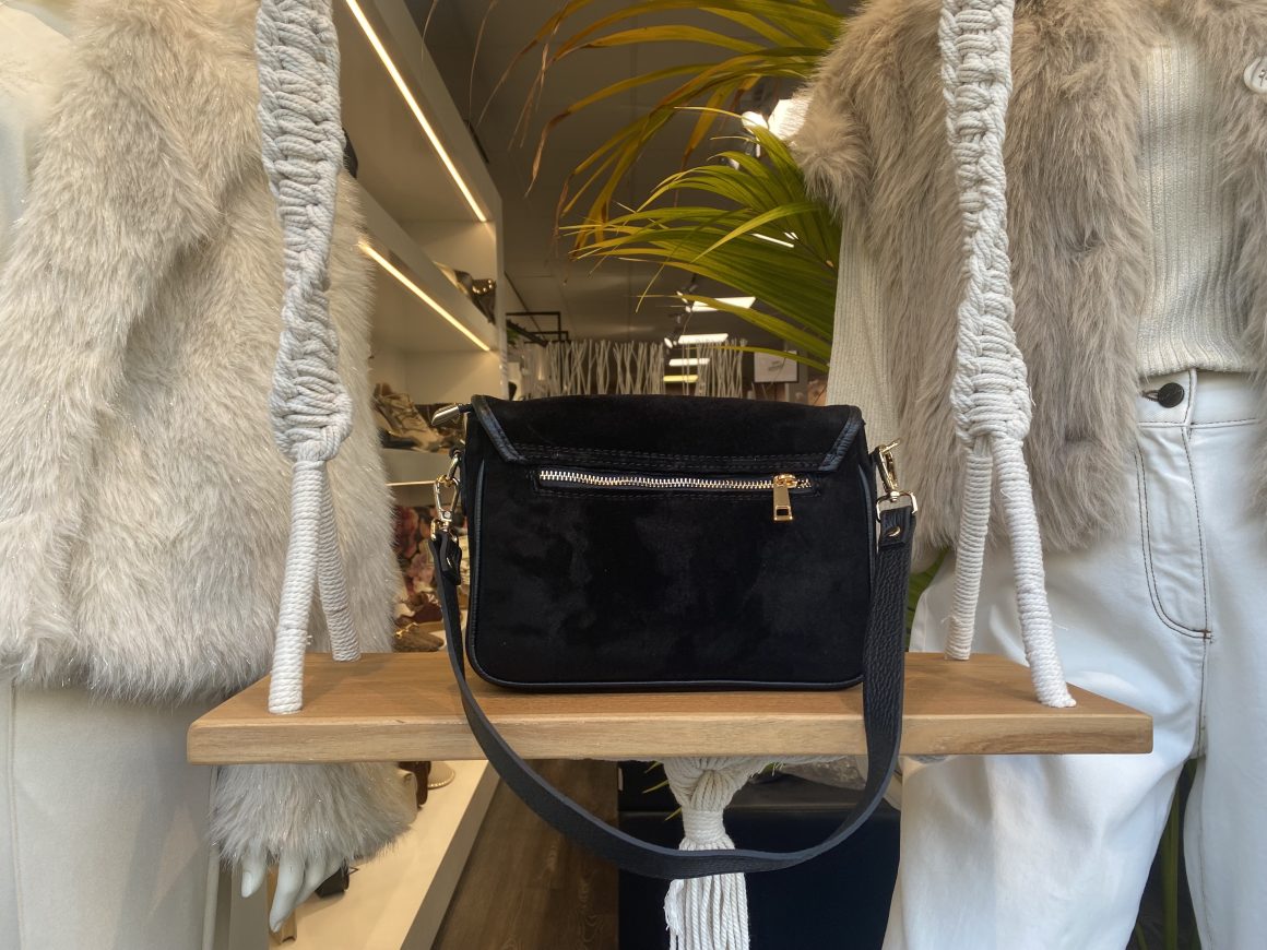 4Fashion / Mode / Merken / Coco Handtas Suede/leer Zwart/Goud T331
