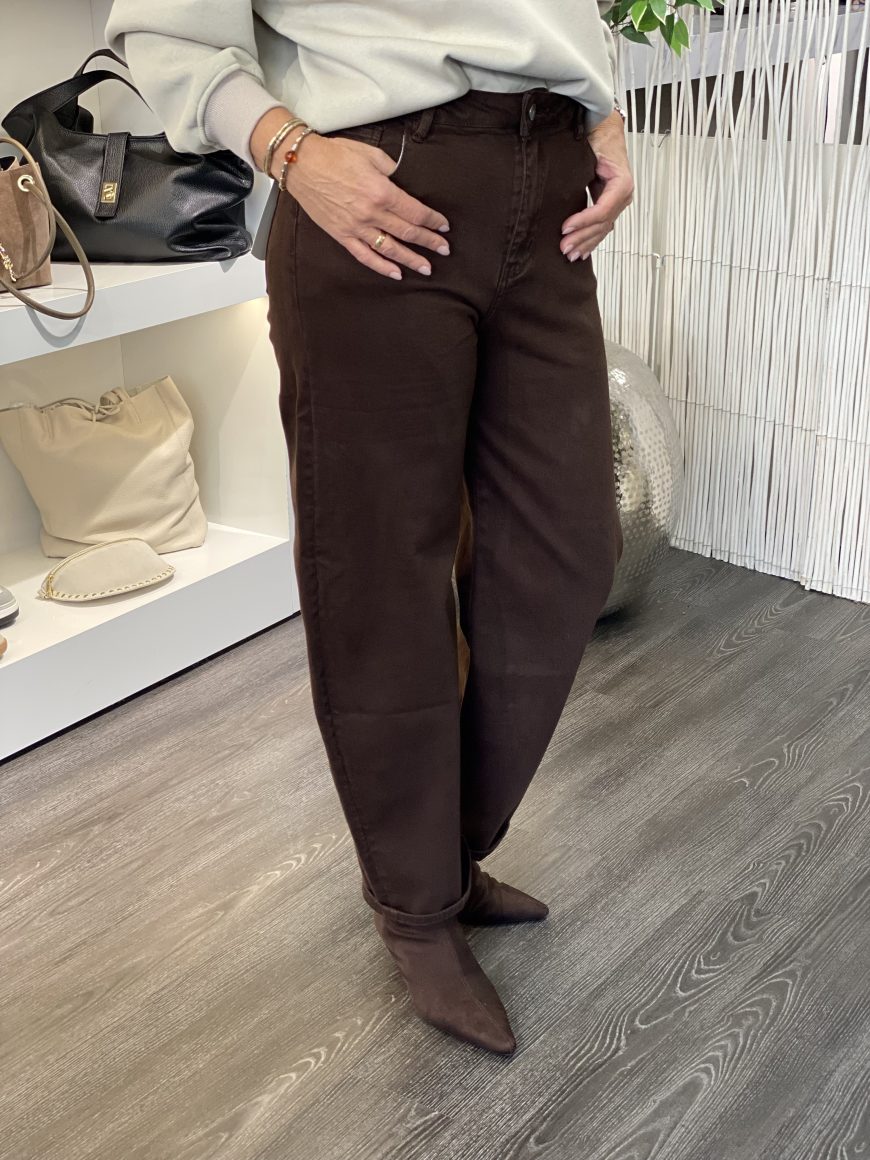 De H991-19 spijkerbroek van Hello Miss is een spijkerbroek in een modieus barrel model, met een klassieke knoop- en ritssluiting. De broek is voorzien van riemlussen en steekzakken aan de voorkant en de achterkant.