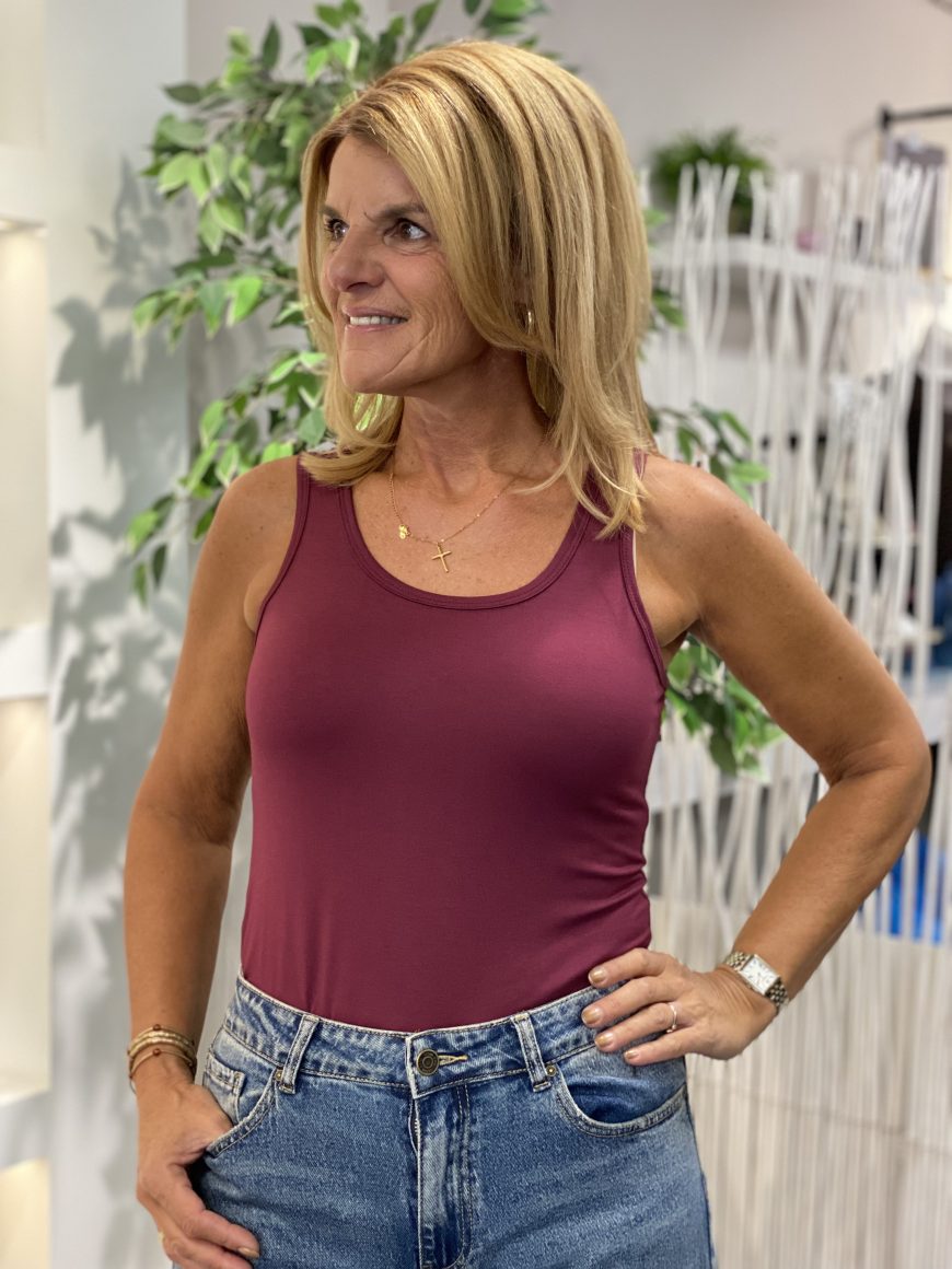 De Valentine top is een prachtige mouwloze basic met een ronde hals met bies, gemaakt uit een zacht viscose.