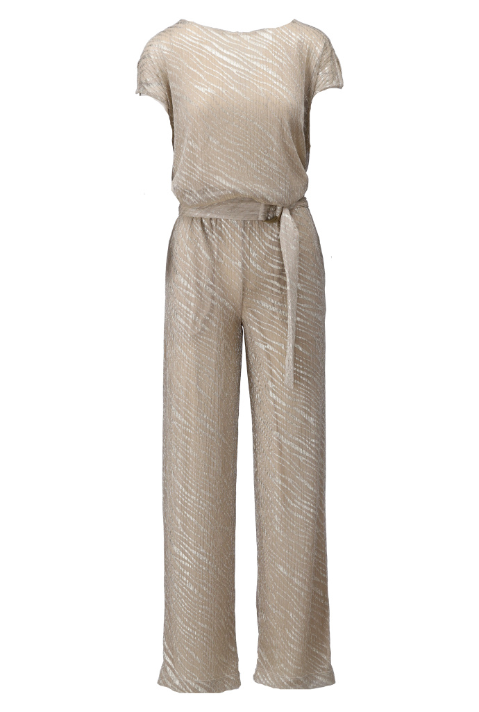 De C250 jumpsuit van K-Design is een prachtige jumpsuit vervaardigd uit een mooie kwalitatieve stof. De jumpsuit is voorzien van een ceintuur in de taille en kapmouwtjes. De soepele stof en streepprint met subtiele lurexglans geven een feestelijke look.
