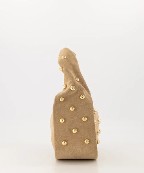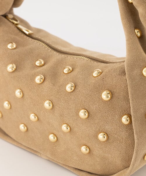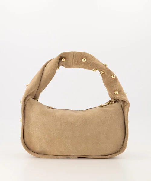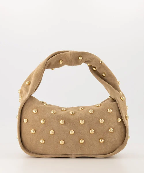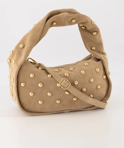 De Lottie handtas is vervaardigd van 100% suede leer afgewerkt met goudkleurige studs. Lottie is inclusief een afneembaar en verstelbaar hengsel, zodat de tas ook als crossbodytas gedragen kan worden. Deze must-have wil je niet missen!
