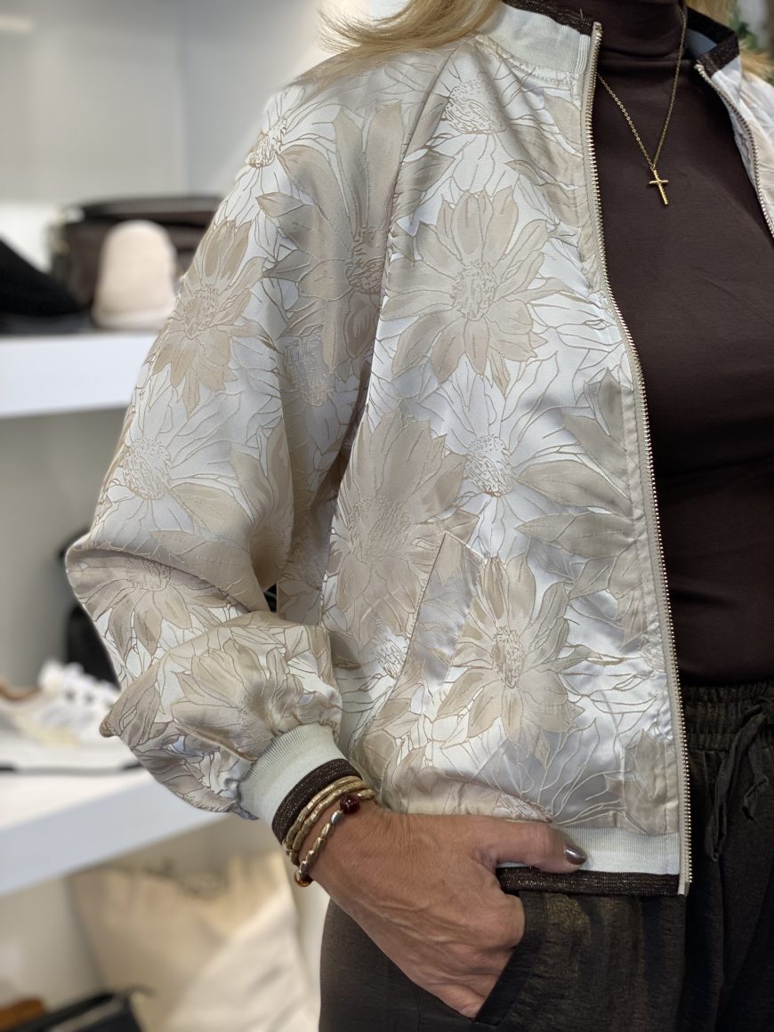De Paris jacket van Maicazz is een leuke bomberjack met een geborduurde bloemmotief en gouden details.