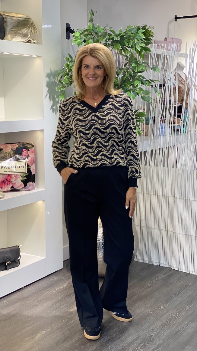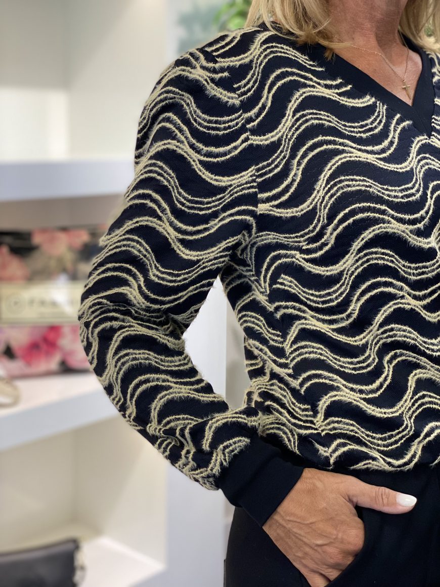 De Prace trui van Maicazz is een comfortabele trui met een modern patroon. De trui is voorzien van een V-hals en lange mouwen.