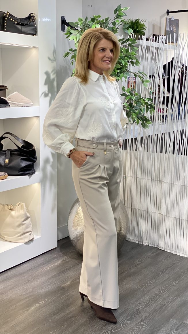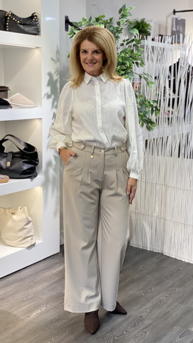 De Roah broek van Maicazz Zizo is een moderne broek met wijde pijpen die comfort en stijl combineert. De broek heeft een hoge taille met plooidetails aan de voorzijde en knoopaccenten aan de tailleband voor een elegante en vrouwelijke uitstraling