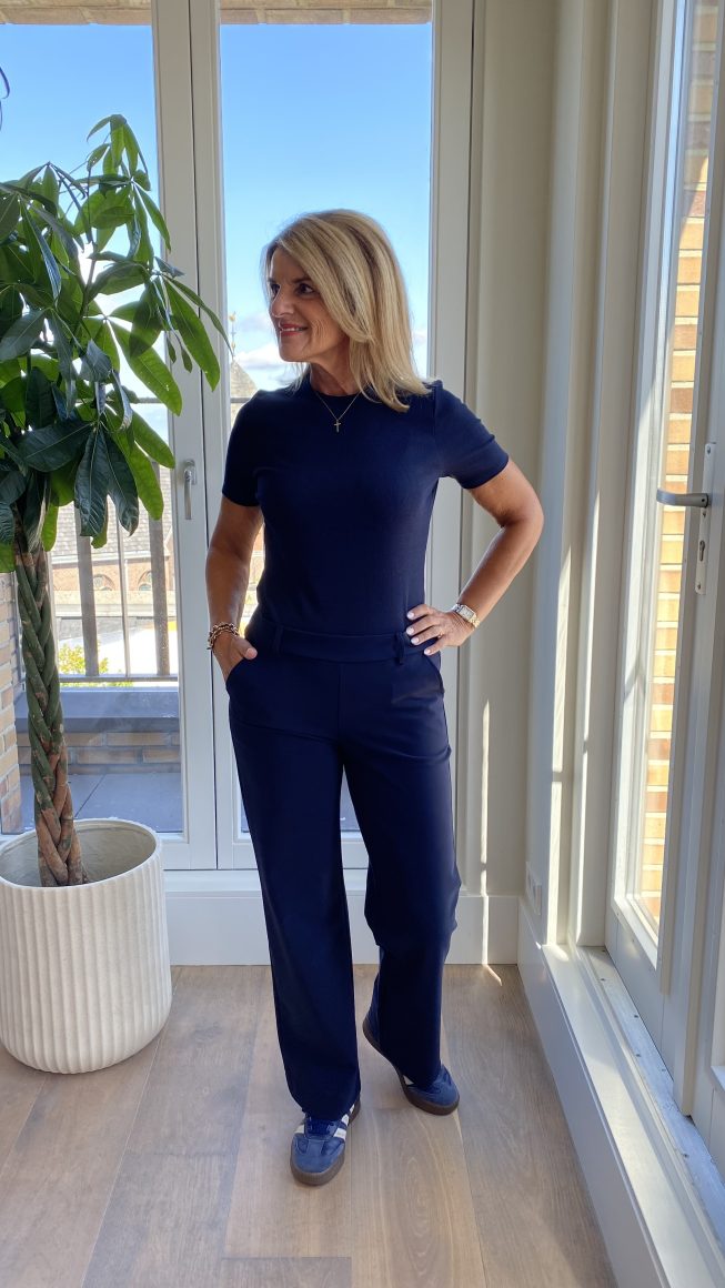4Fashion / Mode / Travelkleding / Mi Piace Bonded Travelstof Wijde Broek dark blue denim 202624