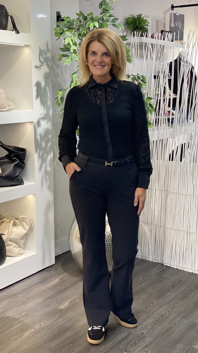 De 202694 blouse van Mi Piace is een blouse afgewerkt met semi-transparante kanten stof. De blouse is voorzien van een klassieke kraag, een knoopsluiting en semi-transparante wijdvallende mouwen met manchetknopen. Draag deze vrouwelijke blouse met een pantalon of rok voor een avondje uit, of met een blazer voor een stijlvolle look.