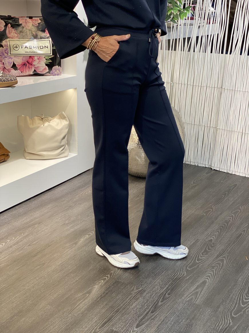 De 20200103 broek van Mi Piace is vervaardigd uit een zachte sweatstof. De broek heeft een recht model met wijde pijpen, steekzaken aan de voorkant en een elastische tailleband met aanrijgkoordjes. De broekspijpen zijn voorzien van een naad. Combineer de broek met de sweat top 20200100 voor een ton-sur-ton look.