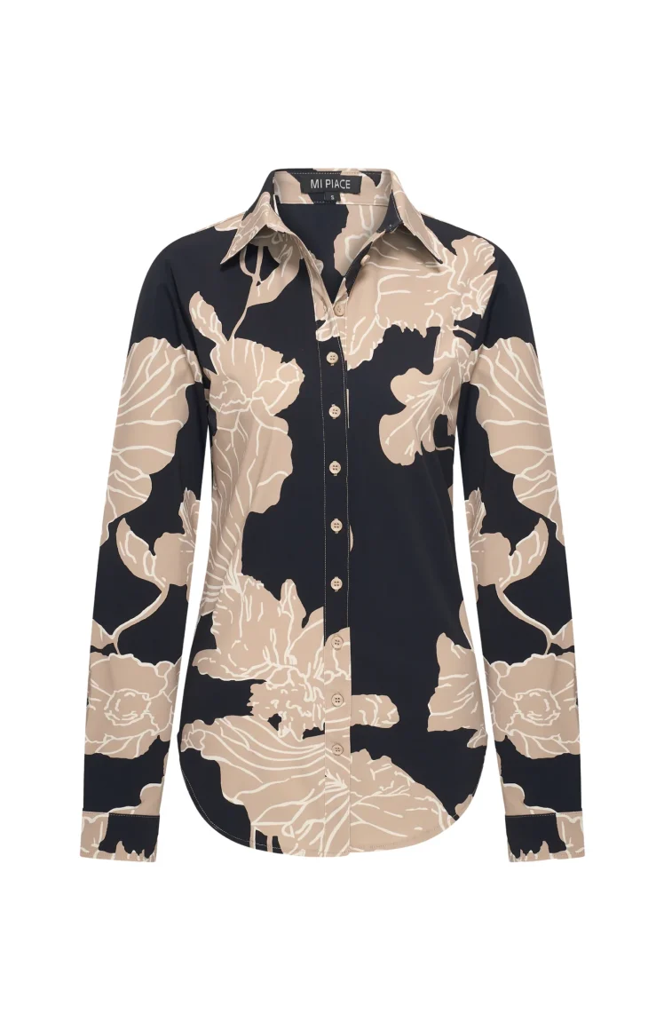 Mi Piace Travelstof Blouse 60840 big flower print black