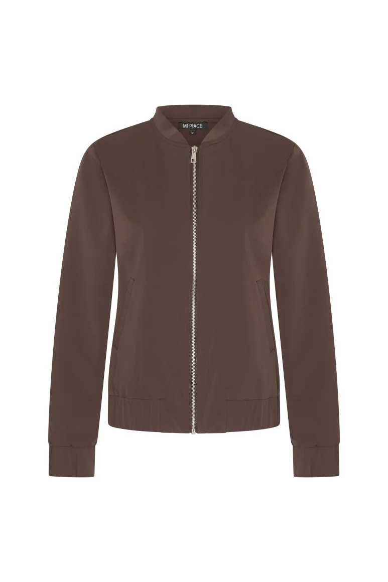 De 202463 bomber jack van Mi Piace is vervaardigd uit kwaliteitsvolle travelstof. De bomber jack heeft een ritssluiting, steekzakken aan de voorkant en een ronde halslijn. De bomberjack is prachtig te stylen met de broek uit dezelfde collectie.