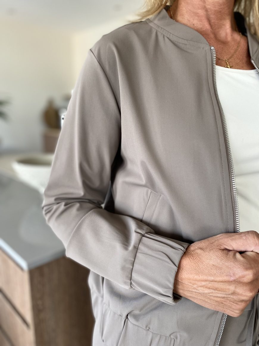 De 202463 bomber jack van Mi Piace is vervaardigd uit kwaliteitsvolle travelstof. De bomber jack heeft een ritssluiting, steekzakken aan de voorkant en een ronde halslijn. De bomberjack is prachtig te stylen met de broek uit dezelfde collectie.