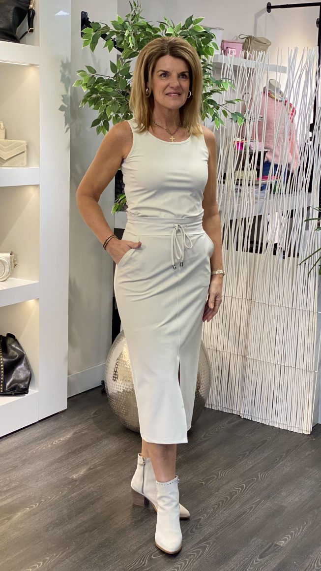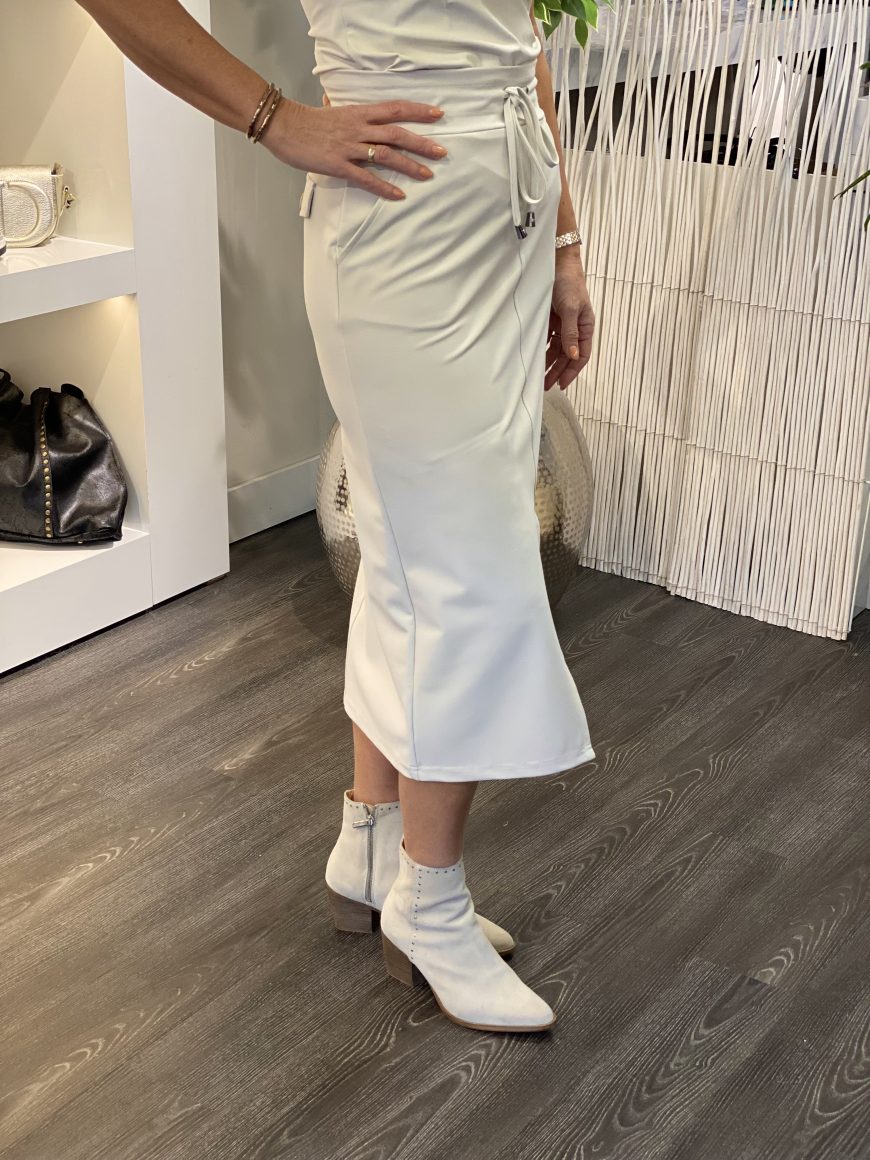 De 202780 rok van Mi Piace is een halflange rok vervaardigd uit stevigere premium travelkwaliteit. De rok heeft een recht model en een split aan de voorkant. Daarnaast is de rok voorzien van een elastische tailleband met aanrijgkoordjes, steekzakken aan de voorkant en faux klepzakken aan de achterkant.