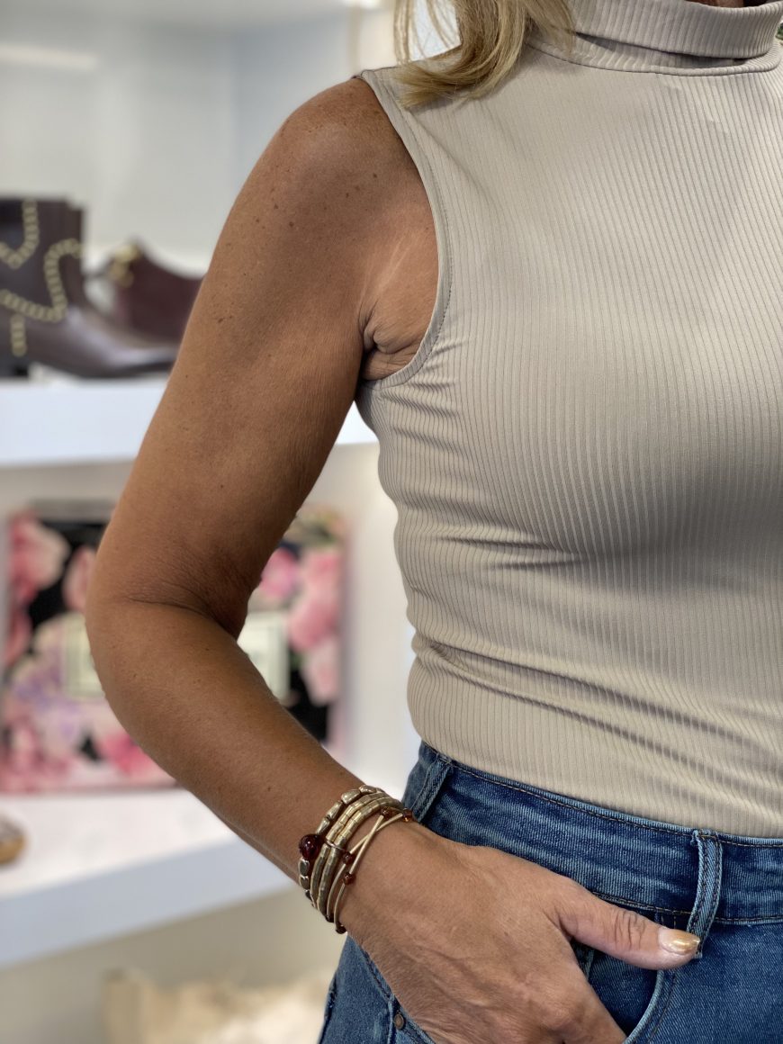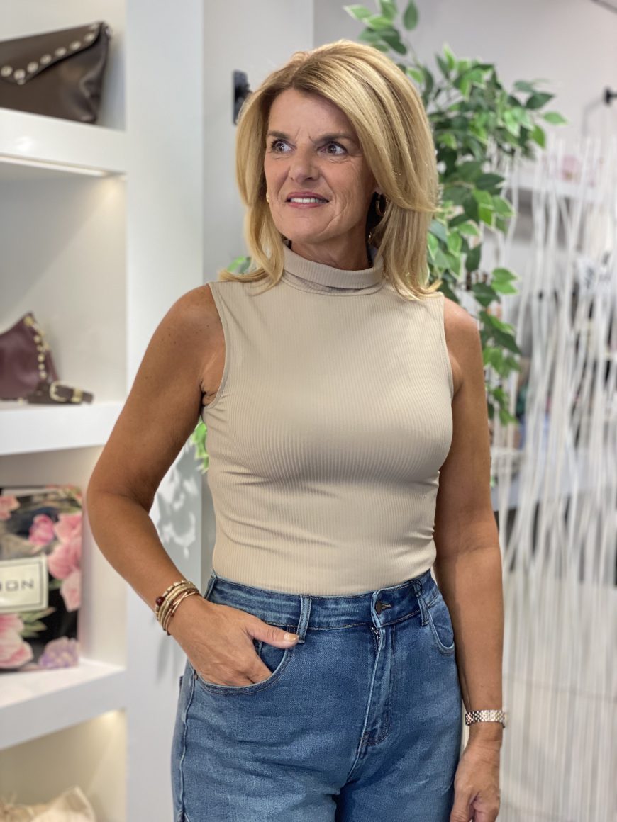 4Fashion / Mode / Merken / Mi Piace / Mi Piace Travelstof Mouwloze Col Top shirt 202642 latte