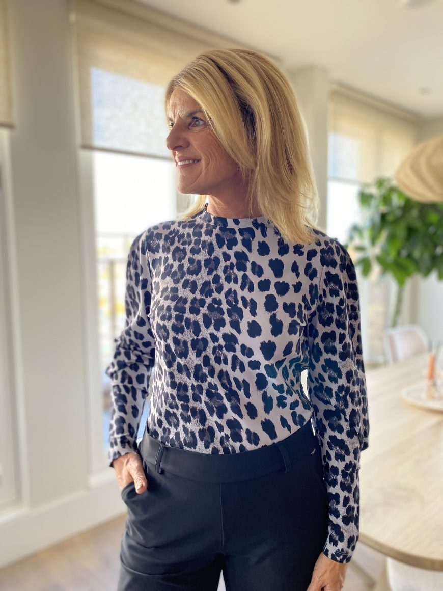 Mi Piace Travelstof Puff Sleeve Top 202737 leopard print grey