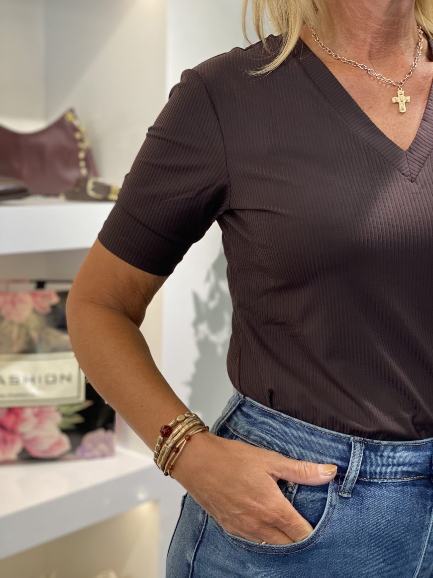 4Fashion / Mode / Merken / Mi Piace / Mi Piace Travelstof Top V-hals 202644 espresso