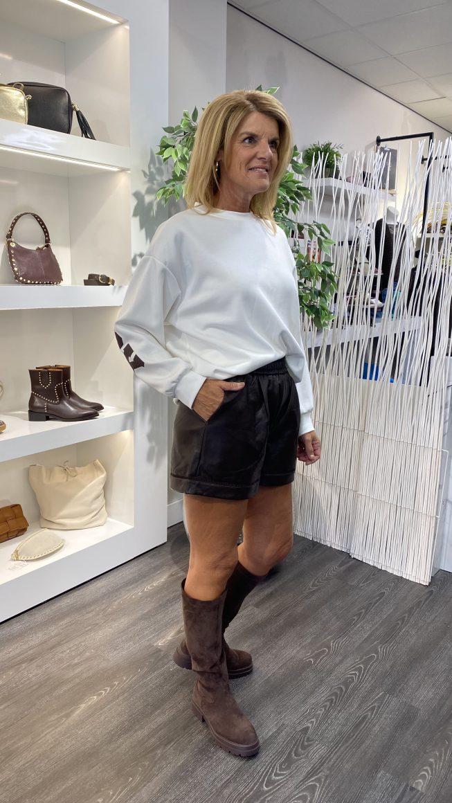 Comfy sweater van Musthaves by Elja in een oversized model, met opdruk op de mouwen en rug.