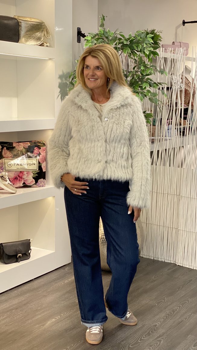 De Faith jacket van Rino & Pelle is een prachtige faux fur jas met een luxe geribde structuur. De jacket heeft een opstaande kraag en een rechte, comfortabele pasvorm. Een warme en elegante must-have voor het najaar!