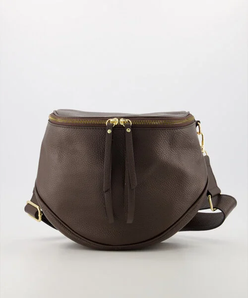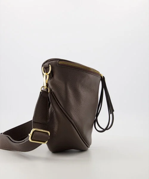 4Fashion / Mode / Accessoires / Tassen / romsa crossbody tas echt leer donkerbruin