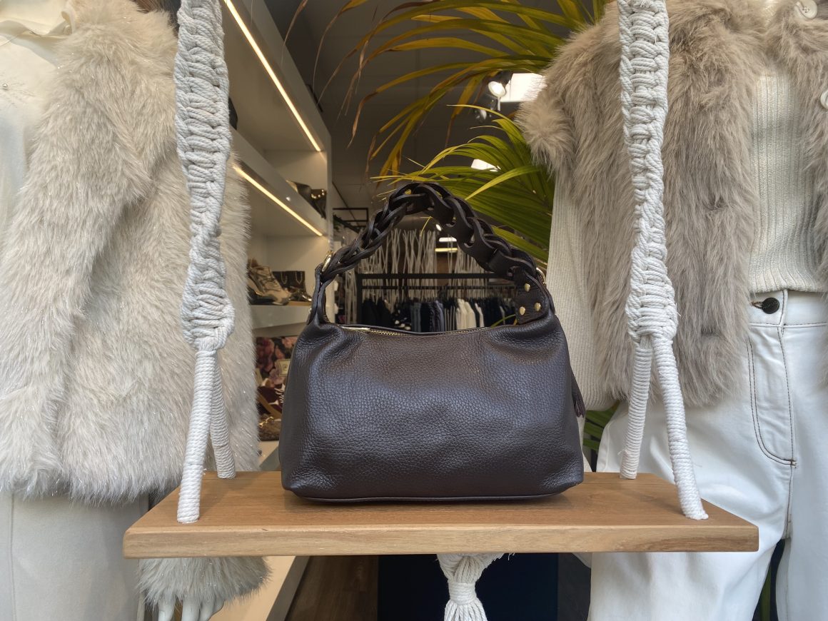 4Fashion / Mode / Accessoires / Veerle Schoudertas Leer Donkerbruin T323