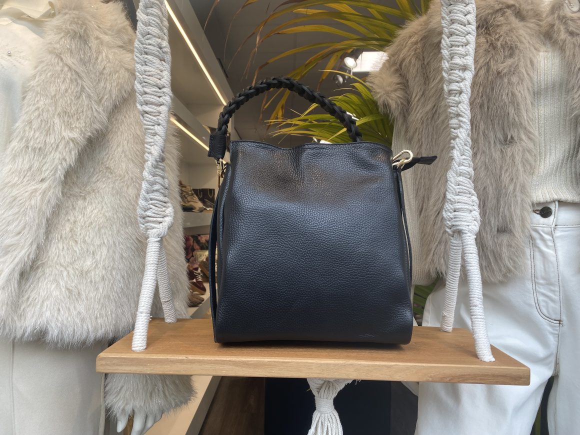 4Fashion / Mode / Accessoires / Schoudertas Leer Vlecht Zwart T322