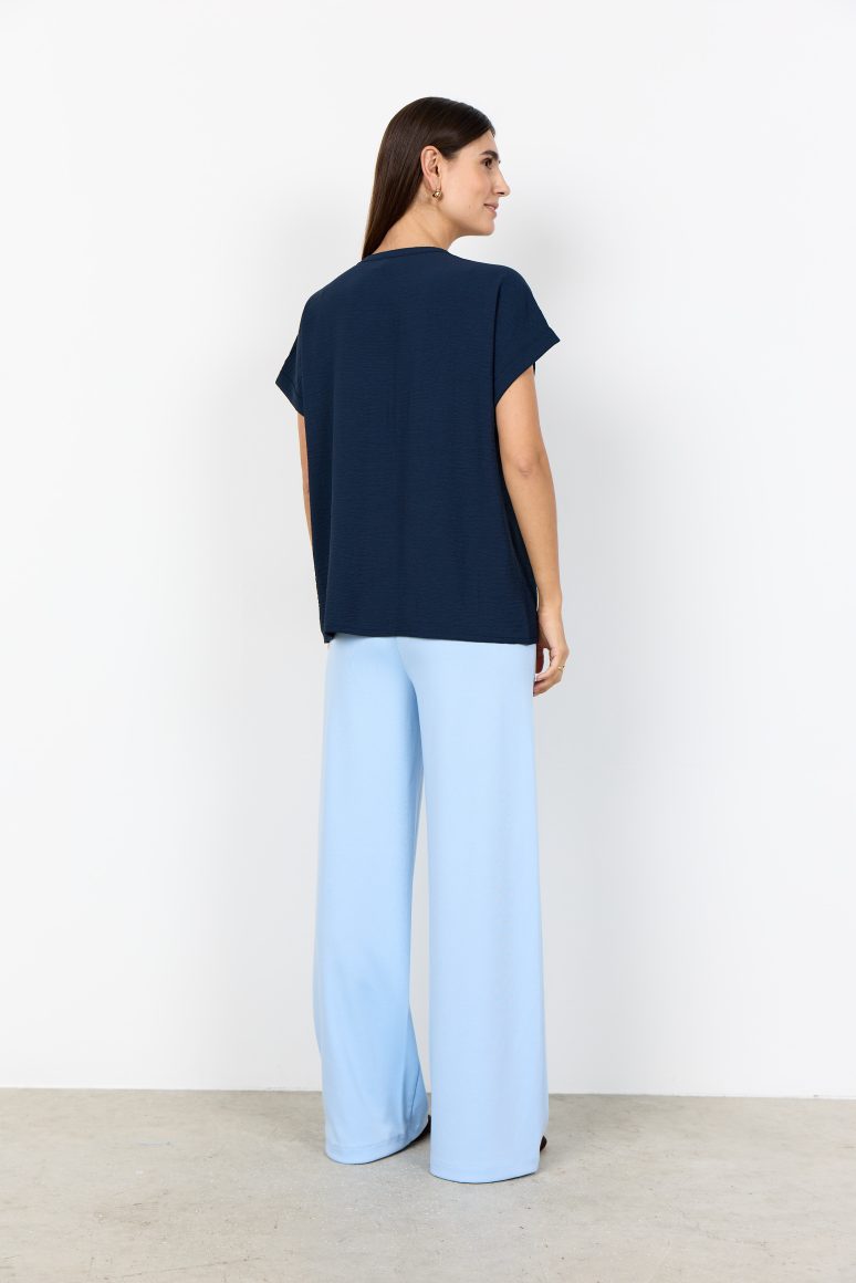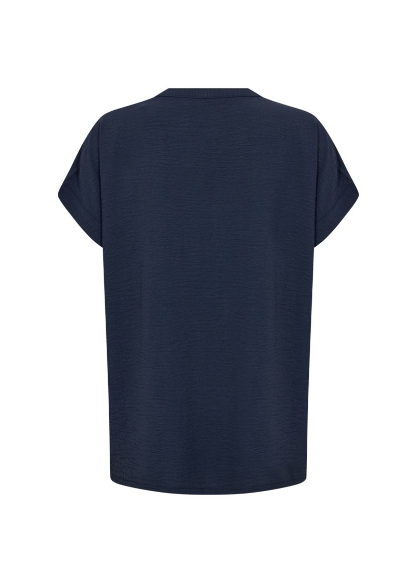 Het Cath 1 top van SoyaConcept is een T-shirt gemaakt van 100% polyester. Het shirt heeft korte mouwen, een subtiele V-hals en een delicate textuur die een unieke touch geeft. Combineer het met een nette pantalon en opvallende sieraden voor een verfijnde look.