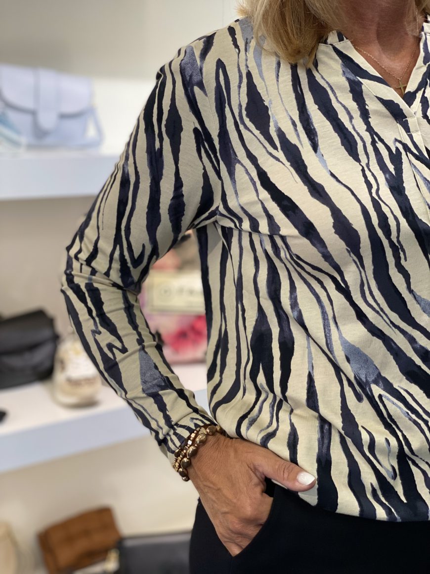 De Felicity AOP 522 top van SoyaConcept is een top gemaakt van 50% biologisch katoen en 50% viscose. De top heeft een V-hals met split, lange mouwen en een opvallende abstracte print. Combineer hem met een jeans of rok voor een gebalanceerde en casual look.